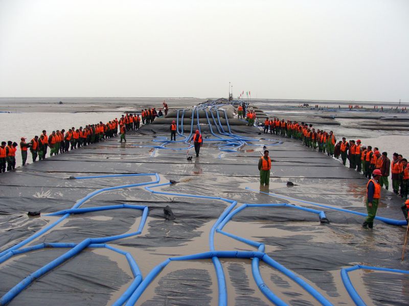 如东洋口港海中围堰吹填合龙